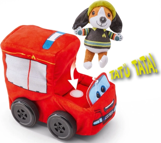 Mașina de pompieri este de asemenea echipată cu efecte sonore. La apăsarea câinelui din pluș poți auzi sunete de motor și sirenă. Telecomanda permite activarea claxonului. Câinele din pluș poate fi detașat, oferind copiilor posibilitatea de a imagina diferite povești.