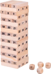 Jocul din lemn de turn este un joc distractiv și captivant pentru întreaga familie. Se joacă cu 54 de blocuri de lemn care se așază într-un turn. Jucătorii își succed turnul scotând blocuri individuale și plasându-le în vârf fără a dărâma turnul. Pe lângă metoda tradițională de joc, poți folosi și 4 zaruri de lemn pentru a îmbunătăți experiența de joc.