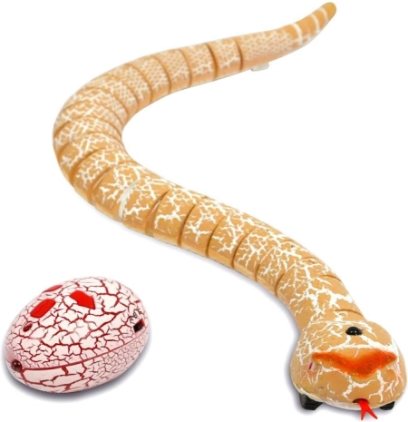 Șarpele telecomandat imită mișcările unui reptil real – se unduiește, scoate limba și își mișcă coada, părând foarte veridic. Telecomanda în formă de ou este intuitivă, iar datorită dimensiunilor compacte se ține confortabil chiar și de mâinile mai mici.