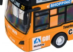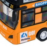 La apăsarea pe șasiu se activează sunetele de pornire a motorului, de rulare și claxon, iar farurile frontale clipesc și interiorul se luminează. Datorită mecanismului cu volant (pull-back), autobuzul pornește singur după armare – ideal pentru joc individual sau împreună cu alții.