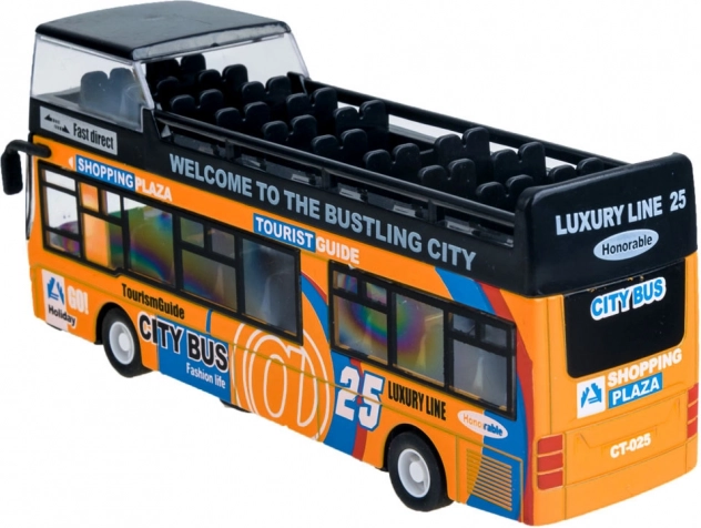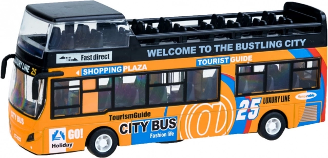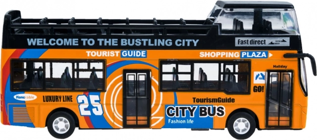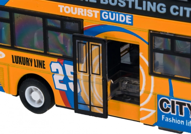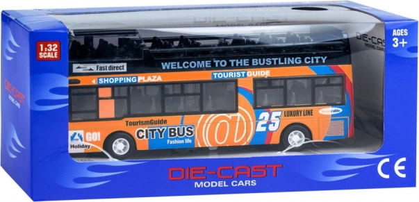 Acest model detaliat de autobuz urban etajat va încânta orice copil. Combinația robustă de metal și plastic asigură rezistență, în timp ce ușile glisante care se deschid și iluminarea interioară oferă o experiență autentică de mers.