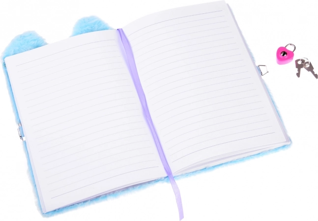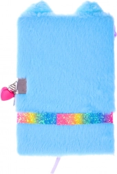 Acest jurnal din pluș fermecător este ideal pentru orice fată care dorește să-și păstreze secretele bine ascunse datorită unui mic lacăt roz. Coperta moale și catifelată albastră arată nu numai estetic, dar este și plăcută la atingere, iar banda curcubeu viu colorată adaugă și mai mult stil.