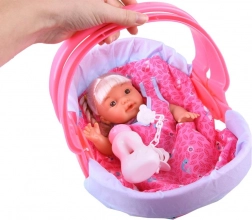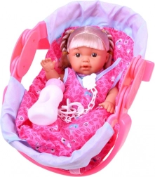 Setul conține o păpușă din plastic cu membre mobile și față din cauciuc. Purtătorul este fabricat din plastic de calitate cu mânere și curele ajustabile pentru a fi atașat, de exemplu, la bagaje. Se potrivește perfect în orice cameră de joacă a copiilor. Datorită dimensiunii adecvate a purtătorului, păpușa poate fi plasată în el până la înălțimea de 30 cm!