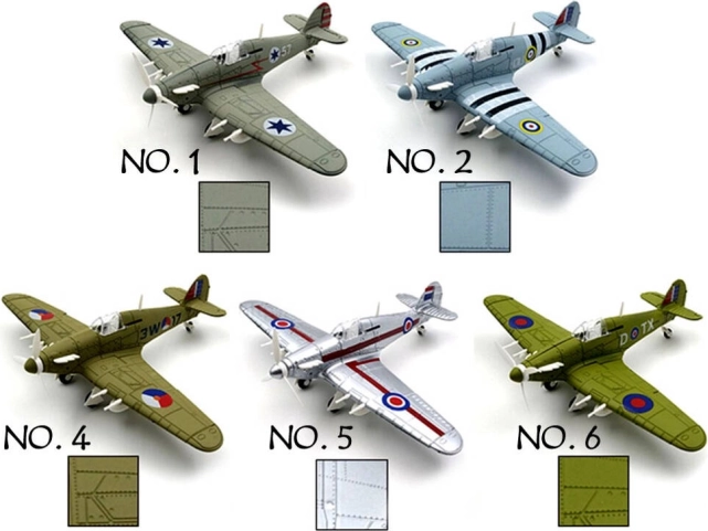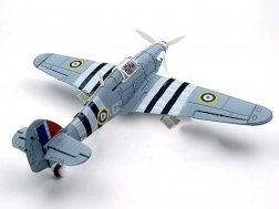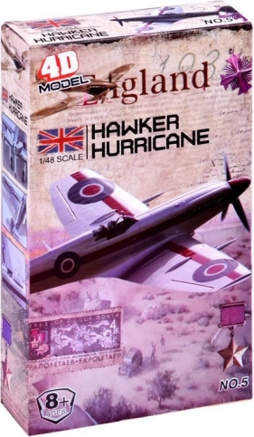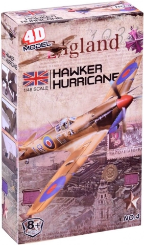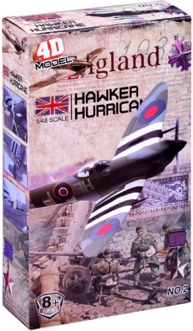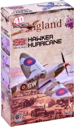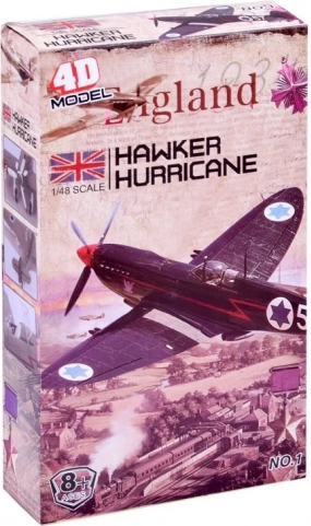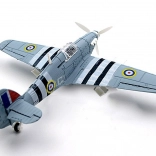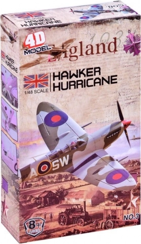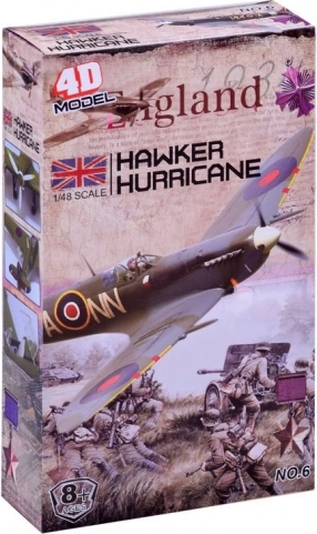 Modelul permite construirea unei replici detaliate a avionului britanic Hawker Hurricane, cu procesare precisă a detaliilor istorice.