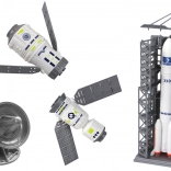 Acest set realizat cu atenție la detalii oferă copiilor o experiență autentică a misiunilor spațiale. Racheta mare este pregătită de lansare, modelul mai mic cu stație de lansare permite rejucarea decolărilor și aterizărilor, iar sateliții cu panouri mobile pot fi plasați pe diverse „orbite”.