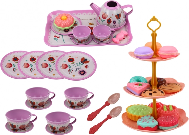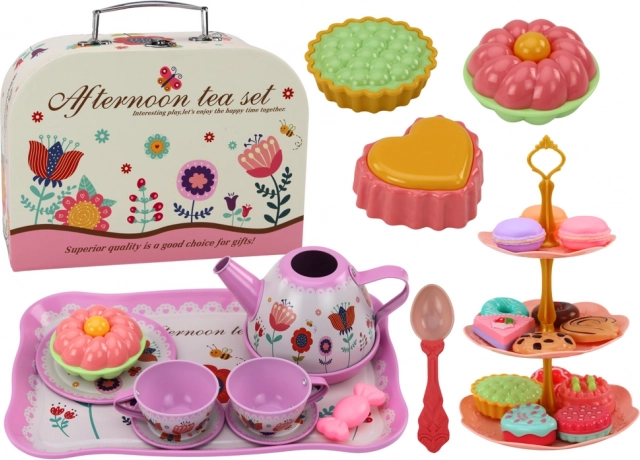 Setul conține tot ce este necesar pentru petreceri de neuitat: farfurii mici și mari, un ceainic drăguț pentru prepararea ceaiului, ceșcuțe, tăviță, suport și diverse deserturi tentante. Fiecare element este lucrat cu atenție și culorile și modelele sunt foarte atrăgătoare pentru copii, ceea ce încurajează jocul creativ.