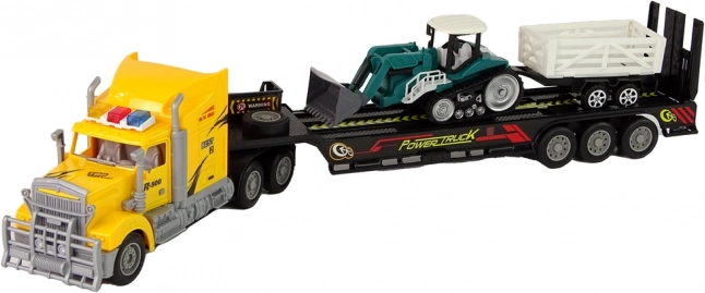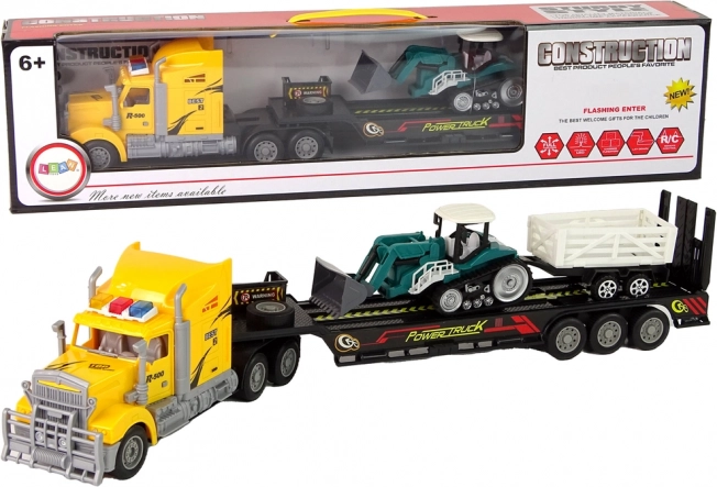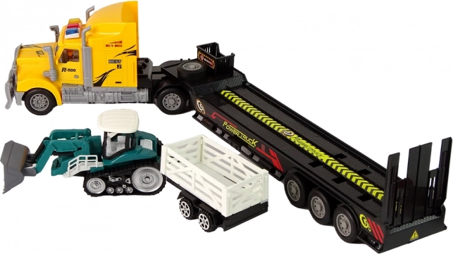 Semiremorca low-bed și remorca detașabilă permit transportul în siguranță al utilajelor și încărcăturii. Perfect pentru a simula transportul real pe șantier.