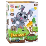 În acest joc colorat și amuzant, copilul tău se poate bucura de elemente interactive și de o distracție grozavă. Elementul central este o movilă cu orificii, care nu doar redă muzică veselă și luminițe clipitoare, ci oferă și spațiu pentru acțiunea micuțului iepuraș care se ascunde înăuntru și este pregătit să sară.