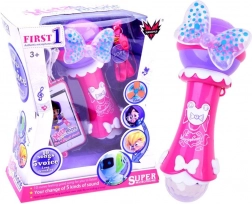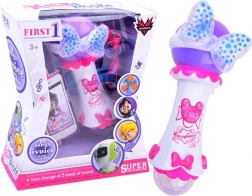 Deveniți starul scenei de acasă! Microfonul karaoke pentru copii, în design roz–mov cu papion, aduce distracție și joc creativ. Datorită înregistrării și redării, copiii își pot asculta prestația, intrarea MP3 permite să cânte pe melodiile preferate, iar efectele luminoase completează atmosfera unui concert.