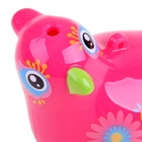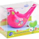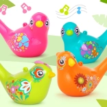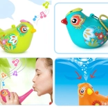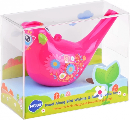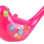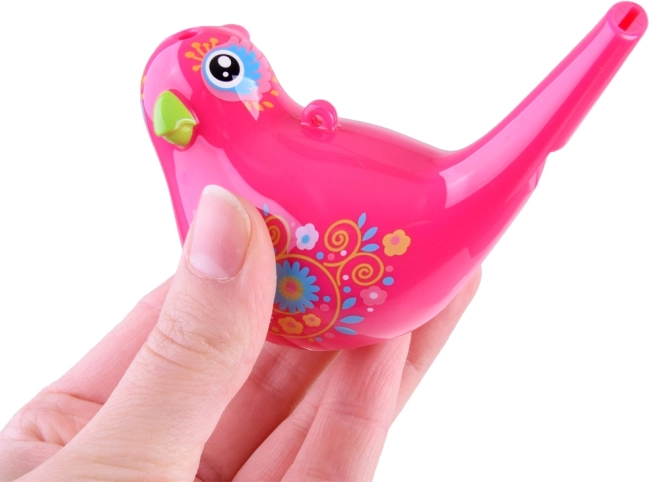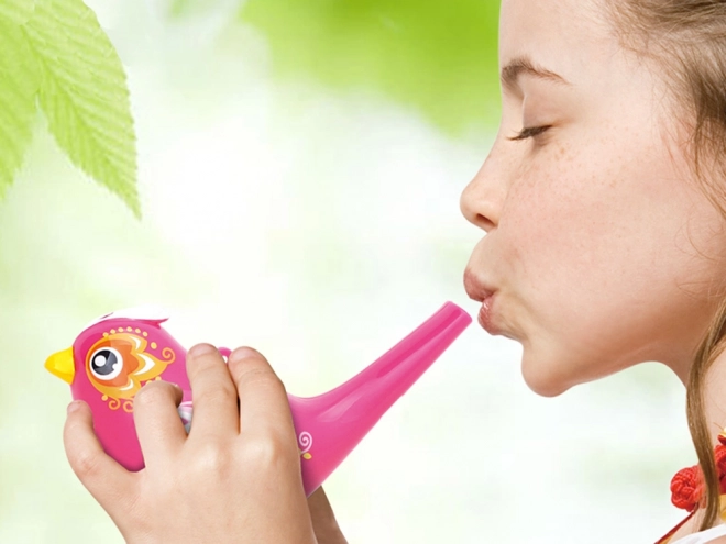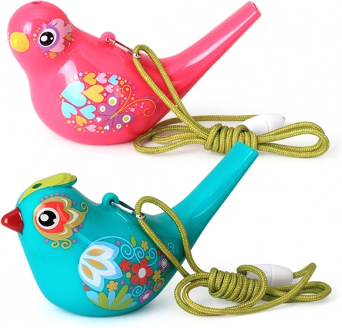 Acest fluier de plastic în formă de pasăre este conceput pentru joacă distractivă acasă, afară sau în timpul băii. Doar sufli și se aude un sunet puternic și clar. După turnarea apei prin orificiul din creștet, fluierul începe să ciripească și să-și schimbe înălțimea tonului în funcție de cantitatea de apă și de intensitatea suflării.