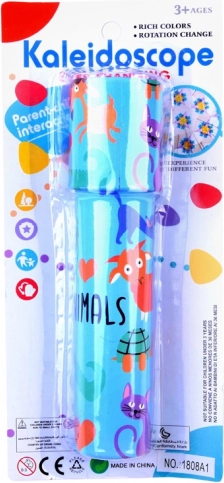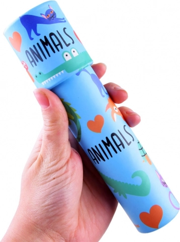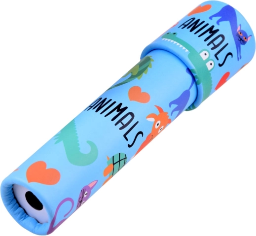 Ilustrațiile vesele cu animăluțe și culorile vii fac din kaleidoscop o jucărie atractivă pentru copii.
