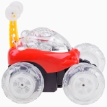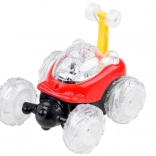 Mini mașinuța de cascadorii este concepută pentru trucuri nebune și întoarceri line. Axa din față permite rotație și vireuri libere, realizând piruete spectaculoase de 360°. Roțile transparente și iluminate creează efecte luminoase impresionante în timpul mersului, pe placul copiilor și adulților deopotrivă.