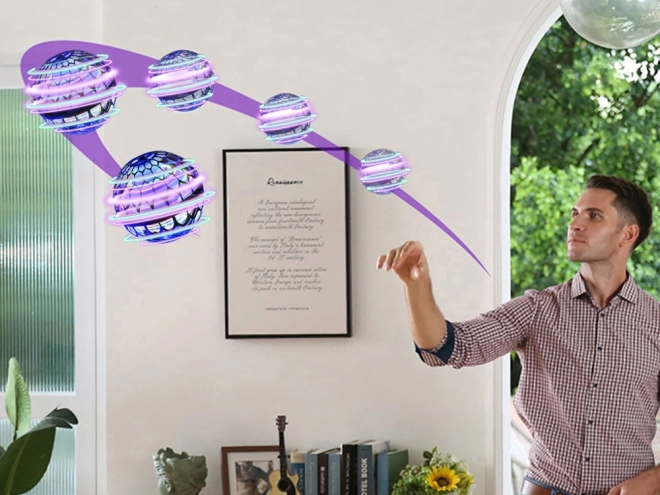 Această minge UFO interactivă aduce multă distracție copiilor și adulților. Datorită senzorilor inteligenți, se ridică deasupra palmei, reacționează la obstacole și, datorită cuștii sigure, rezistă la lovituri. LED-urile integrate creează efecte luminoase impresionante, care se evidențiază mai ales în semiîntuneric.