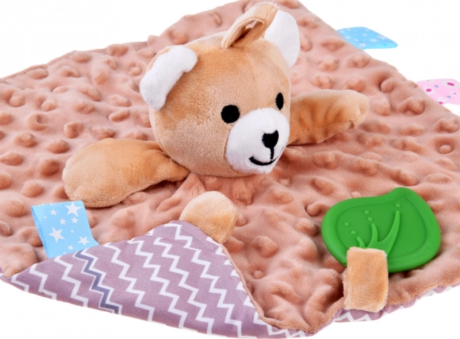 Această jucărie-pluș de alint în formă de ursuleț oferă bebelușilor, încă din primele zile de viață, liniștire delicată și stimulare senzorială. Are material minky foarte moale cu buline 3D, etichete colorate pentru joacă, un mușcător din silicon pentru calmarea gingiilor și elemente foșnitoare și piuitoare, care susțin curiozitatea și dezvoltarea simțurilor.