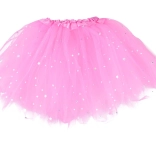 Tiul aerat cu sclipici și talia elastică oferă purtare confortabilă și îmbrăcare ușoară.