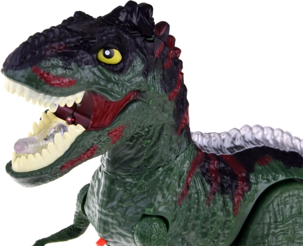Dinozaurul RC poate merge înainte și înapoi, se poate roti la 360°, rage și are moduri amuzante de dans cu muzică. După adăugarea apei în rezervorul din cap, din gură iese abur rece iluminat cu LED roșu, care arată ca un foc încinss – în siguranță și fără miros.