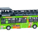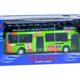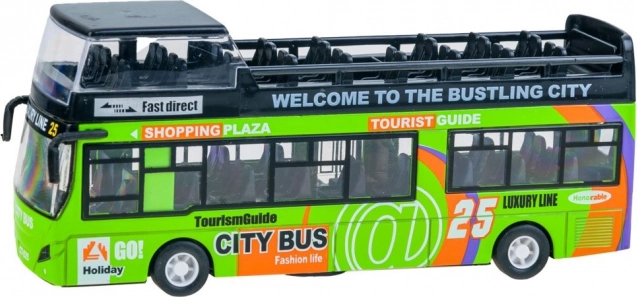 Un autobuz etajat din metal, stilat, îi va încânta atât pe micii șoferi, cât și pe pasageri. Datorită mecanismului pull-back, ușilor glisante care se deschid, efectelor luminoase și sunetelor de motor, oferă distracție realistă acasă și în călătorii. Caroserie metalică și execuție atentă asigură durabilitatea și o viață lungă a jucăriei.