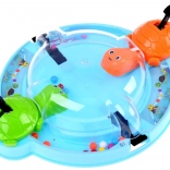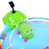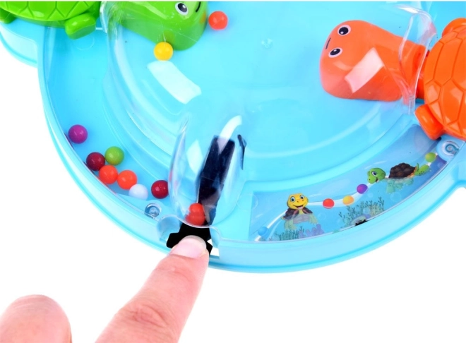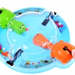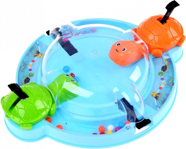 Jocul antrenează abilitatea, reflexele și îi învață pe copii să recunoască culorile. Este ideal pentru joaca de grup cu prietenii sau momentele plăcute în familie. Toți se așază confortabil în jurul bazei circulare, apasă pârghia, ceea ce face ca țestoasele să deschidă gura și să prindă bilele care se rostogolesc.