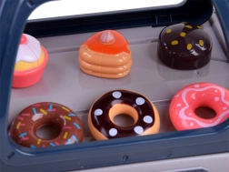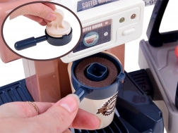Acest set realist le permite copiilor să își deschidă propria cafenea: prepară „espresso”, expun prăjiturile în vitrină și înregistrează comanda la casa de marcat. Espressorul cu circuit de apă, după turnarea apei de sus și introducerea portafiltrului, „preparează” cafeaua cu semnalizare luminoasă (roșu în timpul preparării, verde la final) și sunete de măcinare și turnare. Casa de marcat are panou rotativ, bipăie la plata cu cardul și redă sunet la deschidere.