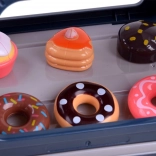 Expuneți prăjituri, baghetă și corn, pregătiți cafeaua cu pahare și capace. Sunt incluse monede, bancnote și card de plată pentru servirea realistă a oaspeților.