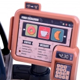 Panou rotativ, sunet la deschiderea sertarului și bip la plata cu cardul îi învață pe copii bazele operării casei de marcat și plăților fără numerar.