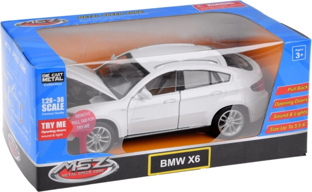 Reproducere perfectă BMW X6 la scară 1:32, care îți va îmbogăți colecția de modele auto. Acest vehicul realizat cu grijă va încânta orice mic șofer.