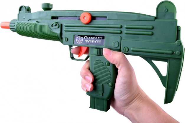 Pistol scurt cu efecte sonore (bateriile AG13 incluse) și pușcă cu mecanism de armare pentru experiențe pline de acțiune în siguranță.