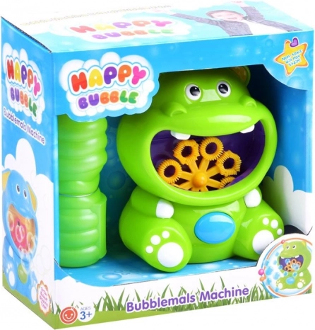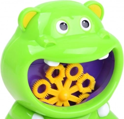Drăgălașul automat de baloane în formă de hipopotam este o alegere grozavă pentru copii mici și mai mari. Doar toarnă soluția în orificiu, apasă butonul de pe burtică și urmărește cum se rotește inelul cu orificii, iar ventilatorul eliberează magice baloane curcubeu. Operare simplă, plastic sigur și culori vii care susțin bucuria jocului atât în interior, cât și afară.