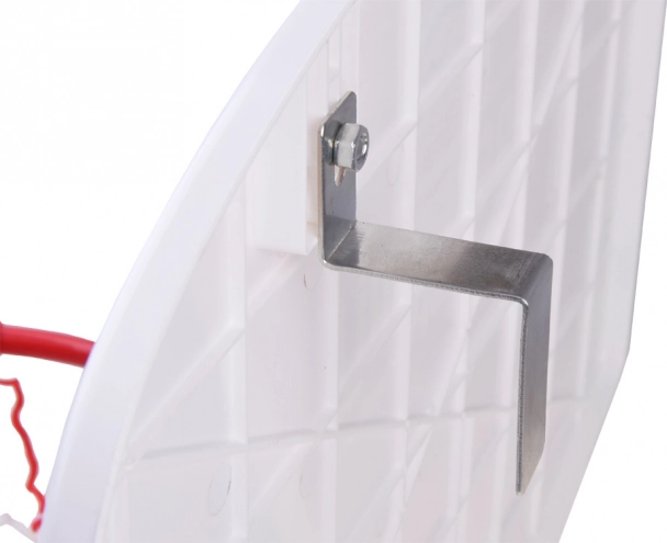Placa din plastic de 46 × 36 cm și inelul metalic vopsit în câmp electrostatic, cu diametru interior de aprox. 30 cm, asigură stabilitate și durată lungă de viață.