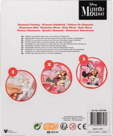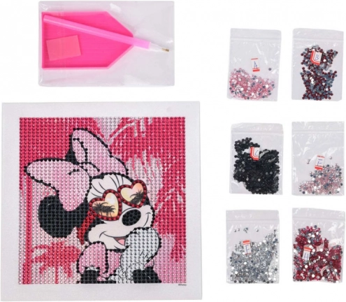 Realizați cu ușurință și cu distracție o imagine strălucitoare Minnie Mouse folosind cristalele și instrumentele incluse.