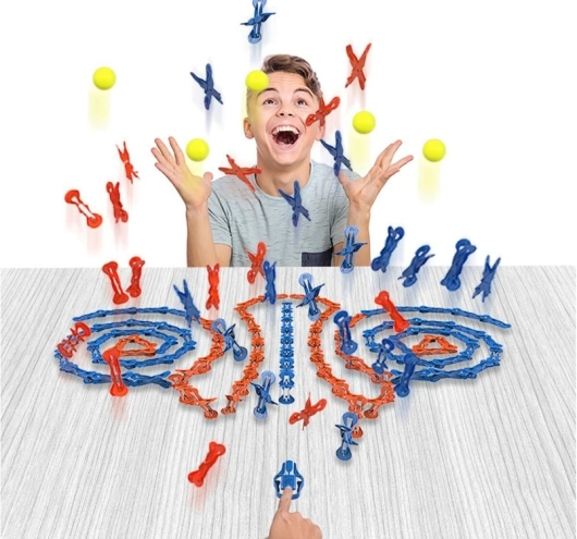 Setul funcționează pe principiul reacției în lanț, permițând crearea unor efecte de domino fascinante.