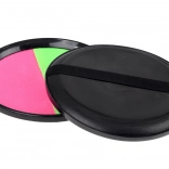 Suprafața de prindere, împărțită în verde neon și roz, cu velcro, captează mingea instantaneu – ideal pentru antrenarea preciziei și reflexelor.