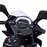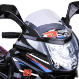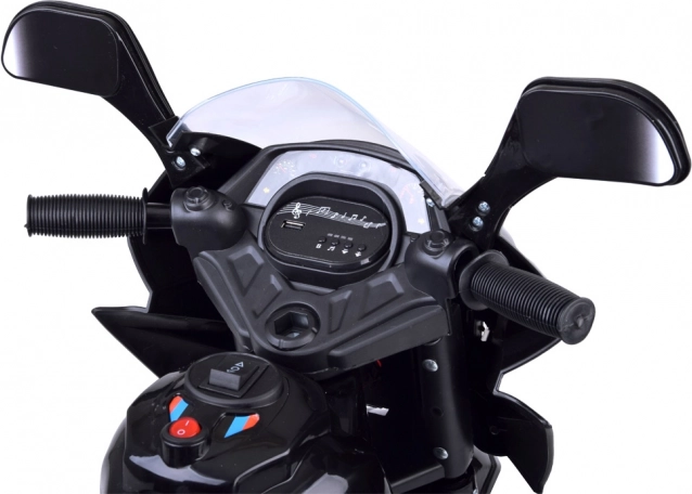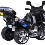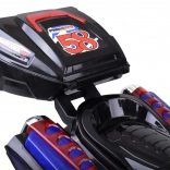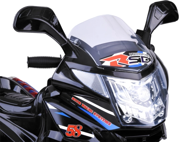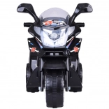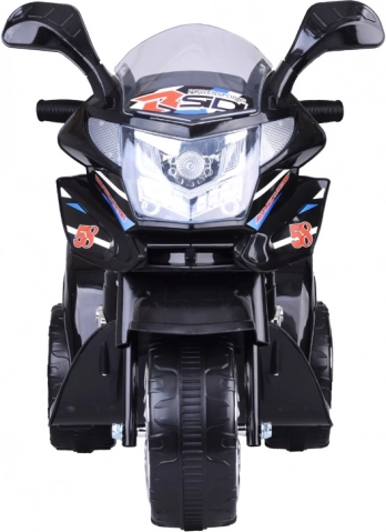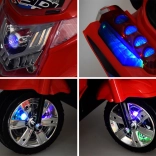 Motocicletă electrică pentru copii, cu design stilat și șasiu cu trei roți, oferă o stabilitate excelentă, iluminare LED colorată în față, pe laterale și în roți, precum și control ușor prin buton on/off. Datorită roților silențioase cu bandă este ideală pentru apartament și terasă, are frână electrică, butoane sonore vesele și un portbagaj spate practic pentru mărunțișuri.