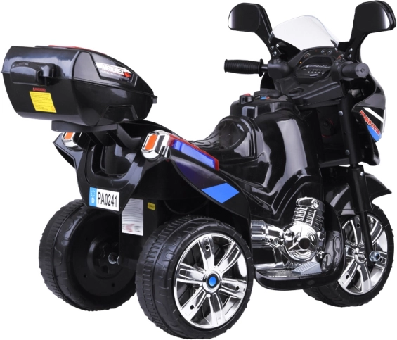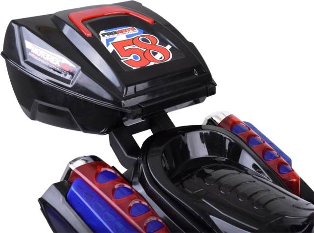 Cutia spate închisă poate găzdui jucăriile preferate și micile necesare ale micului motociclist.