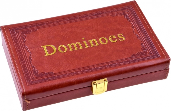 Acest domino vine într-un suport din piele cu căptușeală elegantă și închidere metalică. Oferă depozitare sigură și acces ușor.