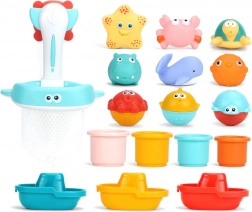 Setul oferă numeroase moduri de a distra copiii în timpul băii: prinde jucăriile plutitoare în plasă, construiește și toarnă apă cu ajutorul paharelor, descoperă ascunzișurile din bilele detașabile și lasă animăluțele din cauciuc să stropească apa ca niște mini fântâni. Datorită plasticului și cauciucului de calitate, jucăriile sunt ușoare, sigure și ideale pentru apă.