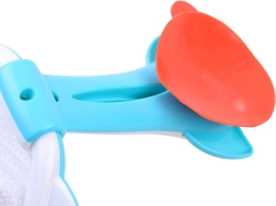 Plasa se fixează ușor pe o suprafață netedă și se transformă într-un coș pentru jucării. Copilul poate exersa „aruncările la coș” și învăța să strângă după baie.
