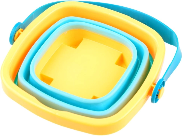 Datorită utilizării siliconului flexibil pe pereți și a plasticului mai dur pe fund și margini, găleata poate fi pliată cu ușurință după ce joaca se încheie. Ocupă mai puțin spațiu și este ușor de transportat și depozitat. Formele au mici găuri, deci pot fi folosite și ca cupe pentru apă.