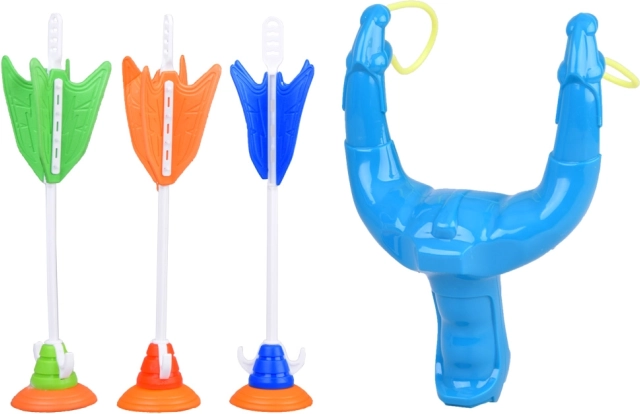 Conținutul pachetului: 1× praștie, 3× săgeată cu ventuză