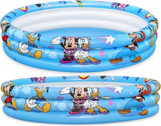 Ușoara și portabila piscină gonflabilă Bestway cu grafică licențiată MICKEY & FRIENDS este creată pentru jocurile acvatice ale copiilor în grădină. Trei inele separate își păstrează forma și ajută la menținerea mai bună a aerului, în timp ce vinilul moale, testat, asigură confort și durabilitate la utilizarea zilnică.