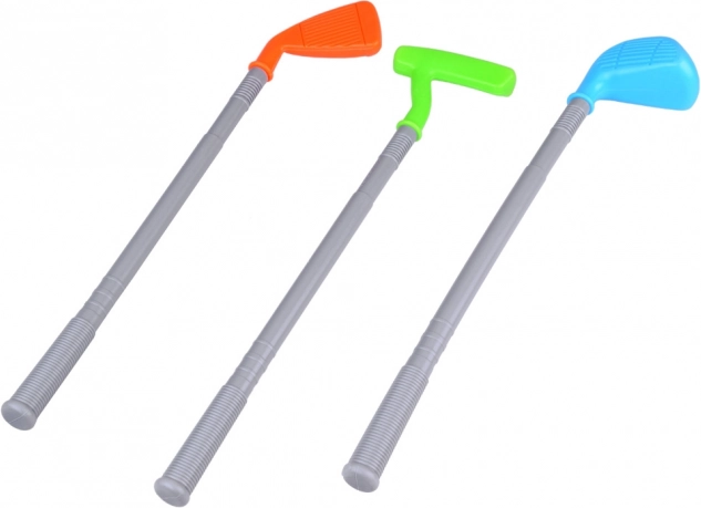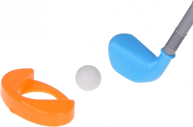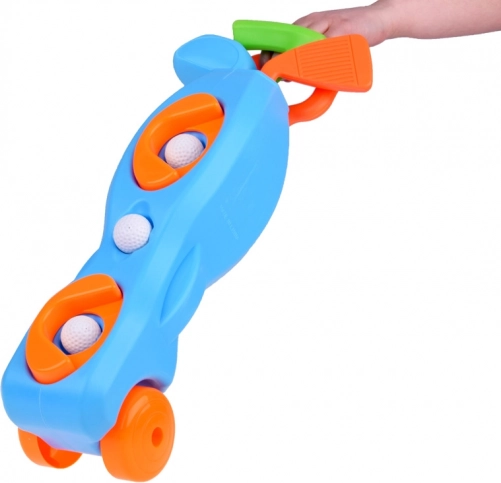- 3× crosă de golf, 3× minge, 2× gaură cu bază, 1× suport/cărucior pe roți