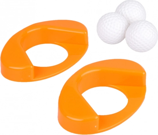 Trei crose ușoare din plastic, trei mingi și două găuri cu bază oferă tot ce este necesar pentru minigolf acasă și în aer liber.