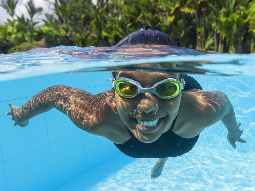 Lentilele rezistente din policarbonat cu filtru UV protejează ochii de soare și asigură o vizibilitate clară atât la înotul în aer liber, cât și în interior.
