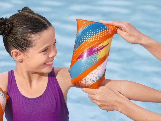 Mânecuțele gonflabile colorate BESTWAY L/XL cu motiv de fluturi pentru copii de 5 până la 12 ani asigură susținere sigură la învățarea înotului. Datorită celor 2 camere de aer independente și materialului rezistent TPU, sunt ușoare, confortabile și bine vizibile datorită culorii portocalii intense.