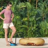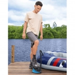 Comutați ușor între modul INFLATE/DEFLATE, astfel încât nu doar să adăugați aer, ci și să îl evacuați rapid. Pompa poate fi acționată cu piciorul sau manual – utilizarea cu piciorul este comodă și rapidă, ideală pe plajă, la lac sau în grădină.