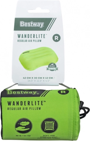 Pernă gonflabilă Bestway WanderLite este fabricată din material rezistent ToughLite și tricot moale și elastic de poliester 50D. Este ușoară și nu ocupă mult spațiu, se pliază și se transportă ușor. Datorită husei în care o puteți depozita după fiecare utilizare, depozitarea este mai simplă.
