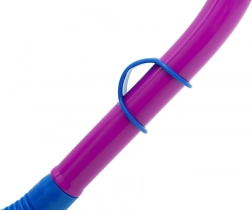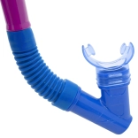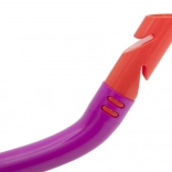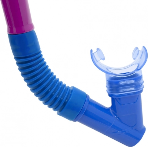 Snorkelul, cu muștiuc moale și ergonomic, permite o respirație comodă și are protecție împotriva stropilor pentru înot mai liniștit.