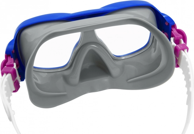 Masca, cu etanșare moale din silicon și curea ajustabilă, se adaptează feței copilului și rămâne stabilă la fiecare mișcare.