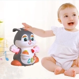 - Mișcare: Jucăria se deplasează în toate direcțiile, încurajând copilul să se târască și să o urmărească.