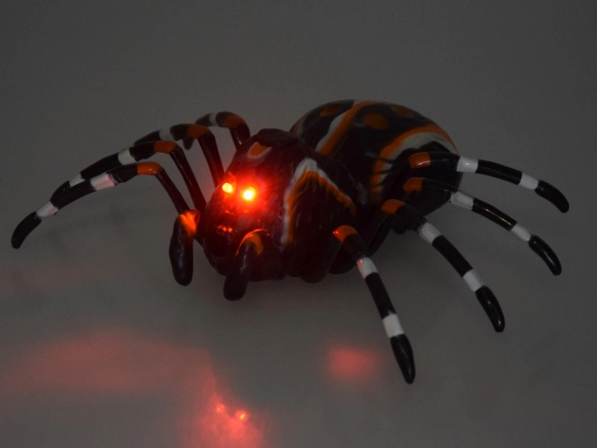 Păianjenul se mișcă lin și credibil, în timp ce ochii săi roșii strălucesc înfricoșător – combinația perfectă pentru o surpriză de efect.